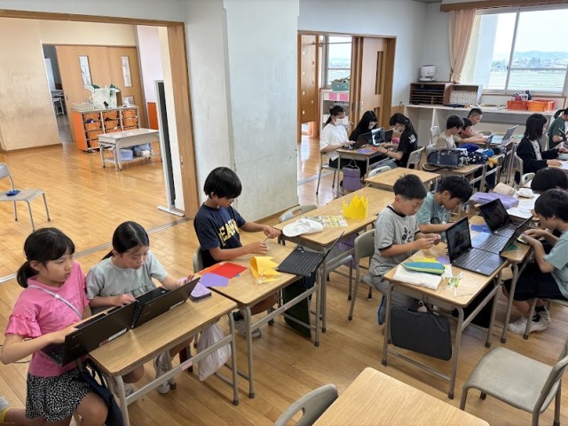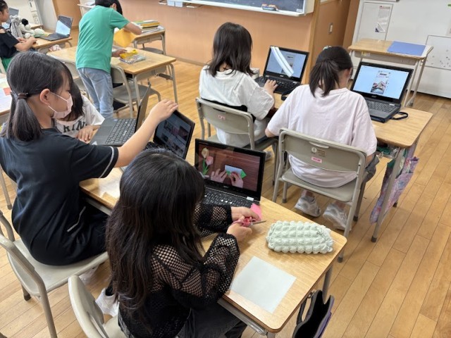 5年生は、チャレンジフェスティバルで「ちびっこチャレンジレース」の運営をします。参加してくれたちびっこたちに、お土産をつくっています。