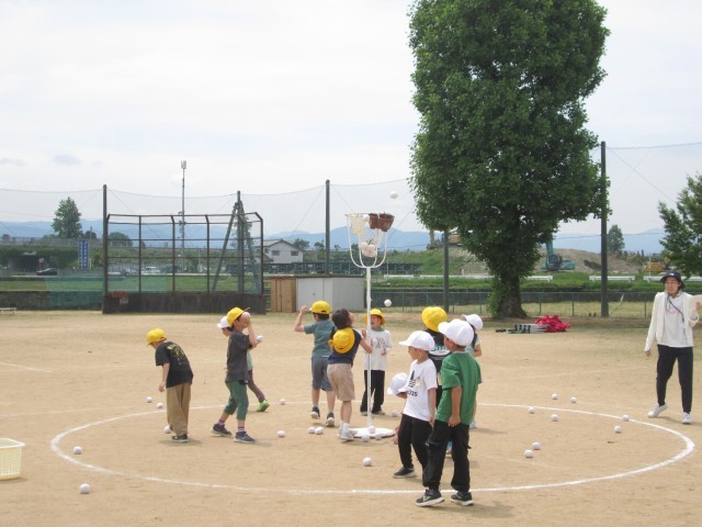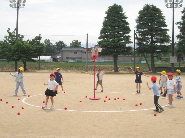 玉が入るように、2年を中心に作戦を立てました。1点、2点、3点のゴールに向けて玉を懸命に投げました。