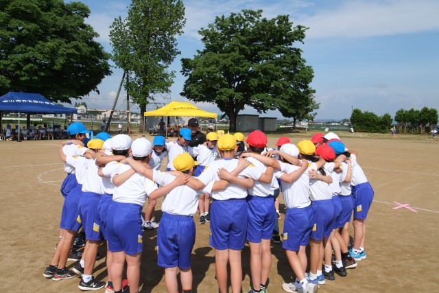 6年生の円陣からスタートしたチャレフェス。熱狂する様子が見られました。