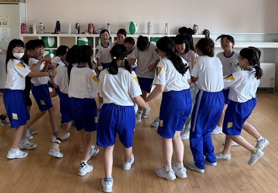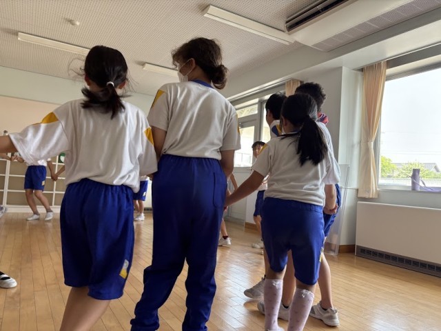 体育科では、バレーボールとフォークダンスをしています。前半は、ボールに慣れる活動をして、後半は、マイムマイムやタタロチカにチャレンジしました。