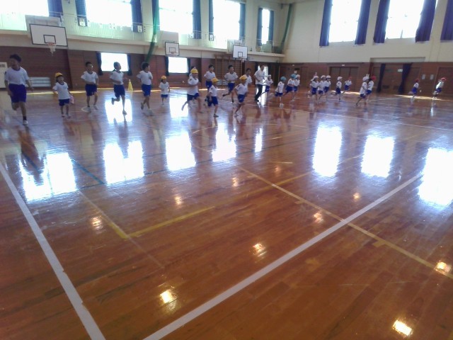 体力テストで、今日は20mシャトルラン(往復持久走)を行いました。