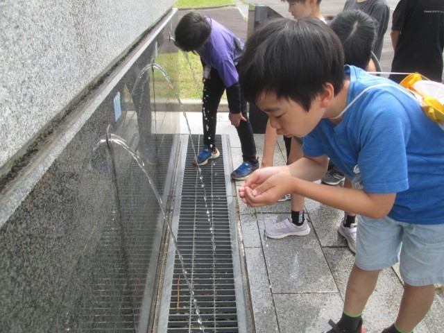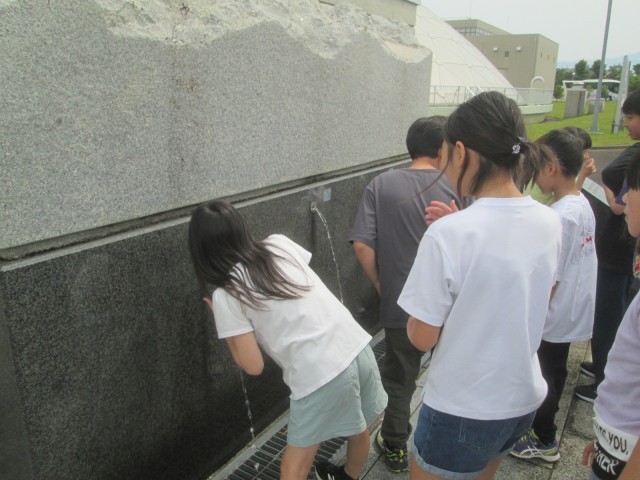 つくりたての水を飲んで子供たちは「おいしい!」「できたてはやっぱちがうなあ」と言いながら水をおいしそうに飲んでいました。