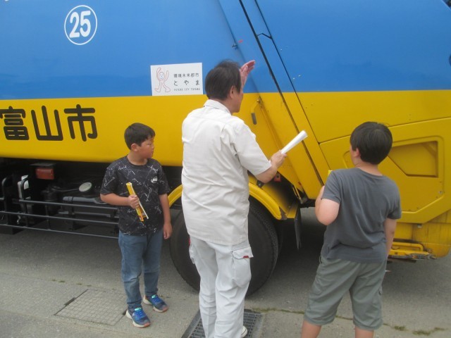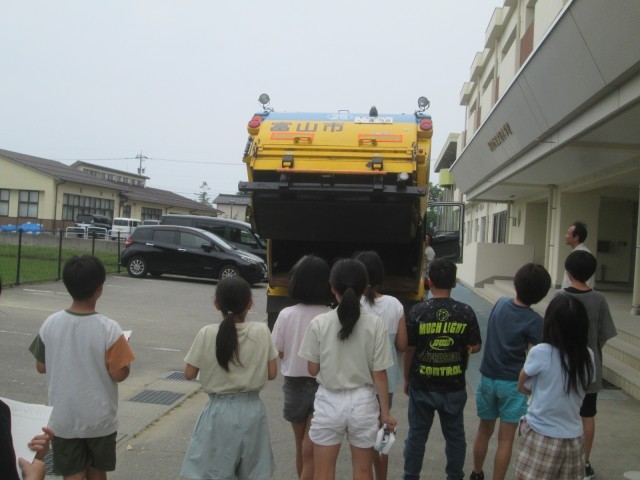 間近でごみ収集車が動いているのを見て「すごい!」「こうなってるんだ!」と興奮している子供たちでした。
