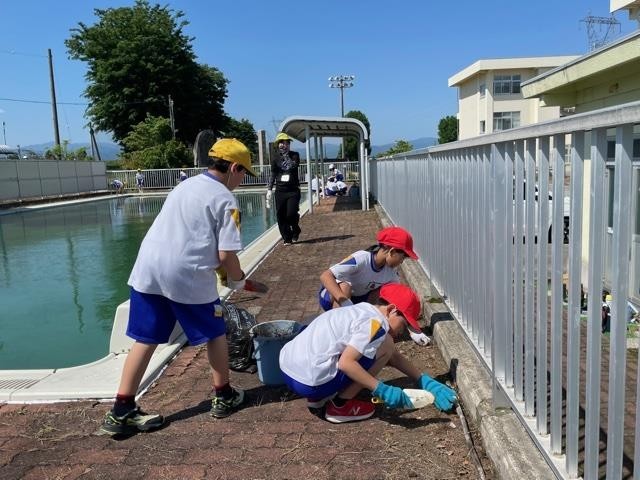 6年生は、プール内の掃除などを中心に、最後の仕上げをしっかりとしてくれていました。