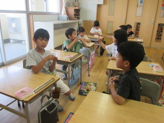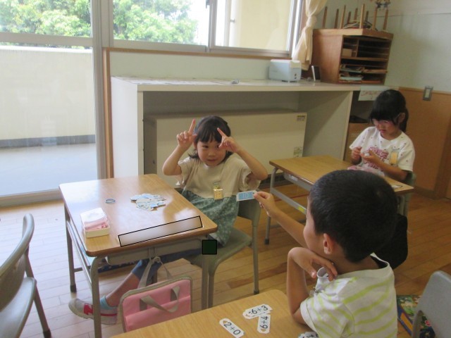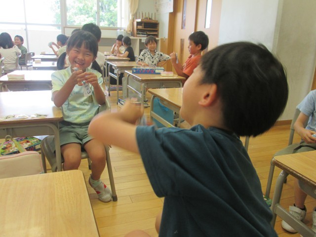 友達に問題を出し合い、楽しみながら学習を進めていました。