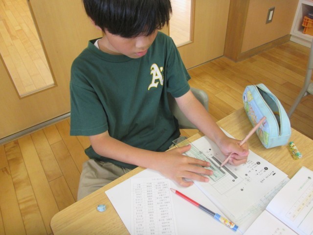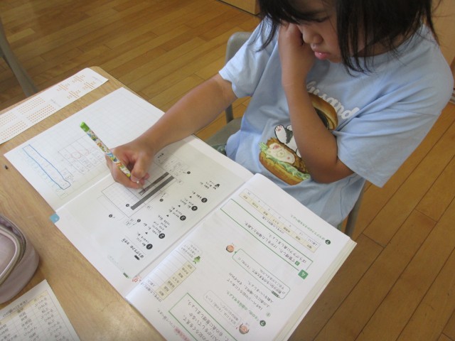 棒グラフをかく学習をしました。長さによって数の大きさが分かりやすいことに気付きました。また、1めもりの大きさによって、伝わり方が違うことにも気付きました。