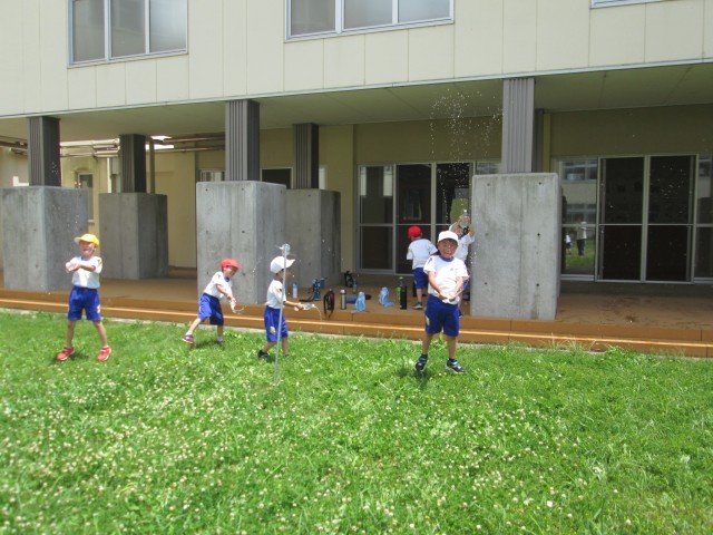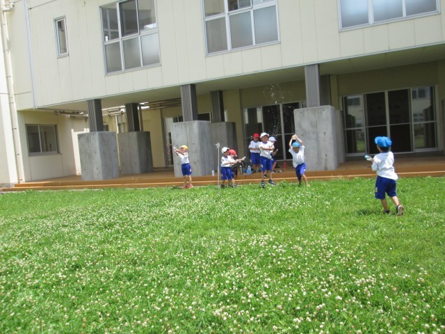 1年生は生活科の学習で水遊びをしました。