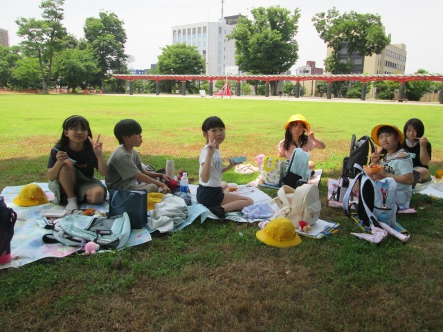 富山駅から市内電車環状線に乗り、城址公園へ向かいました。待ちに待ったお弁当にテンションが上がる子どもたちでした。ご準備いただき、ありがとうございました。