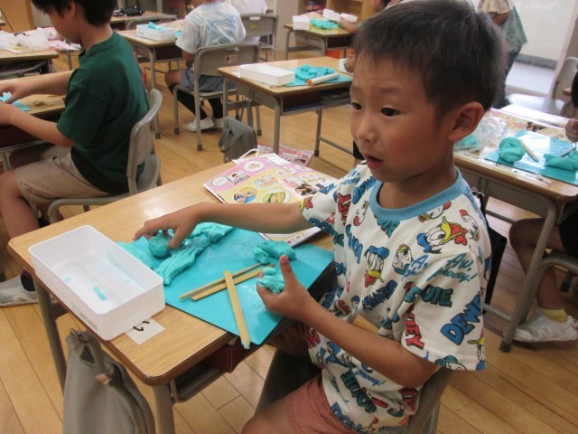 図画工作科の学習で「ねんどでごちそう なにつくろう?」をしました。