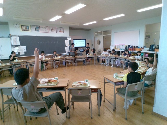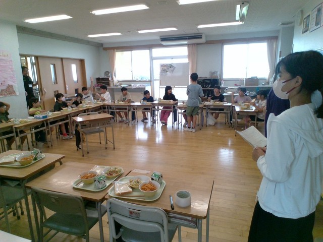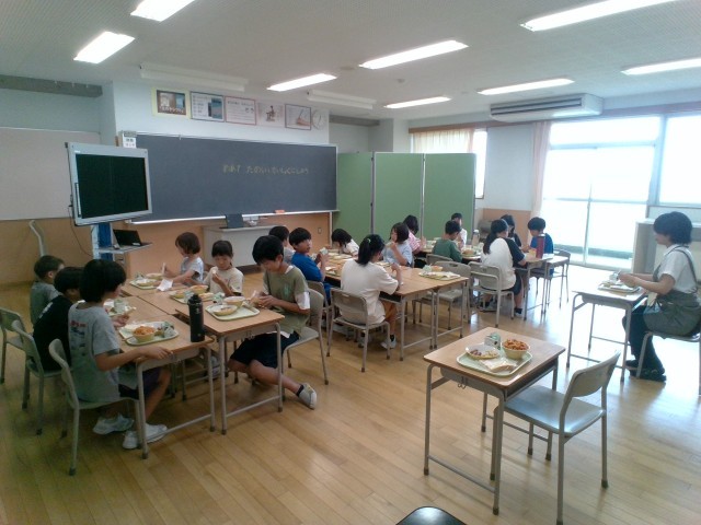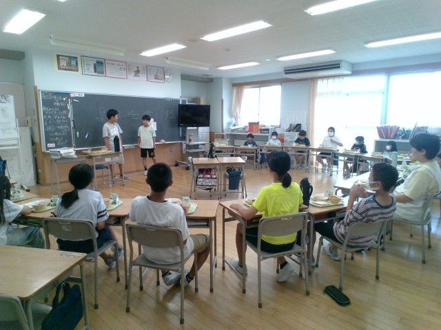 運動・給食委員会が企画した縦割り班での会食がありました。和気あいあいと楽しむ班や少し緊張しながら食べている班など、いろいろな様子が見られました。6年生からのクイズに答える姿もありました。