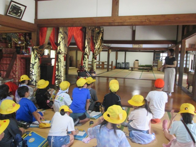 7月4日に、西の番方面の地域探検に出かけました。元西の番公民館長の柴野さんにガイドしていただき、富山県のへそ、西の番防災センター、西の番神社、正源寺、富山霊園、安政地震大転石を見学しました。とても分かりやすく教えていただき、あっという間の時間でした。