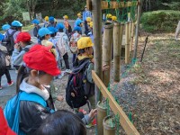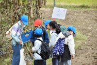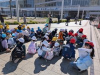 黄団は、ばくだんゲームをしました。爆弾に見立てた新聞紙を早く次の人に渡そうと、急...