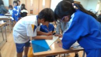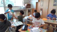 1年生は、図画工作の学習でぱくぱっくんをつくっています。封筒や箱を工夫して口に見...