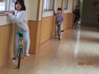 体育の時間、からだほぐしに、わっかの中を「けんけんぱー」のように跳んでみました。...