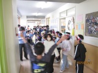 今日はハロウィン! 昼休みに、1、2年生は自分たちで作ったお面や飾りをつけて、ハ...