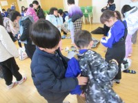 雪っ子遠足に向けて、1,2年生はスキーウェアを着る練習をしました。3年生はリー...