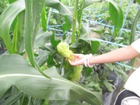 「見て見て!畑のトウモロコシにひげがはえたよ。もう、たべられるかな?」と、畑の野...