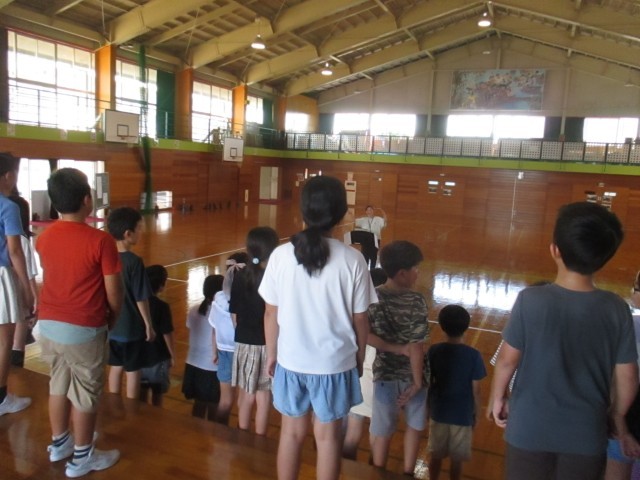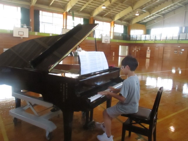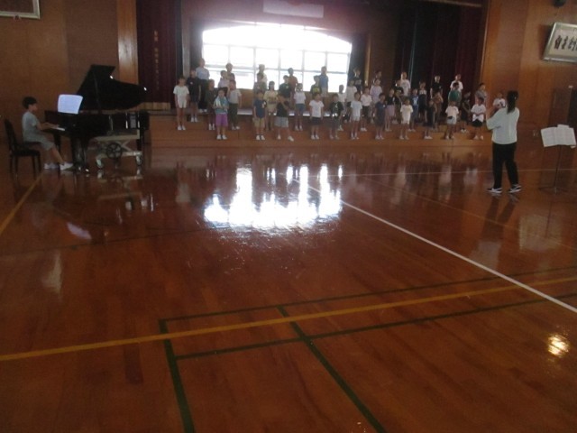 今日は、初めて体育館のステージで練習をしました。体育館にすてきな歌声が響きました。