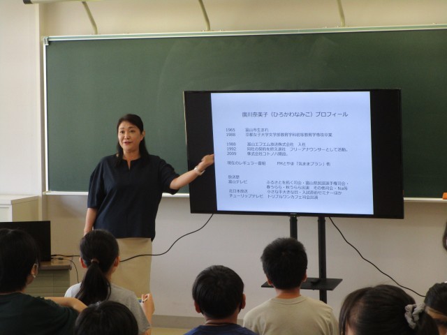 フリーアナウンサーの廣川様をお招きし、アナウンサーの仕事内容や魅力、やりがい等多くの話をしていただきました。