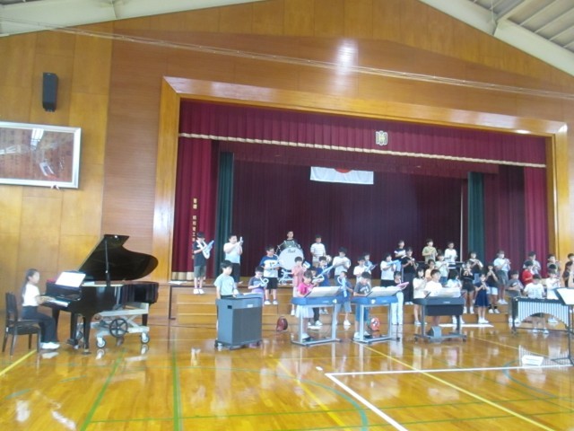 学習発表会に向けて、体育館で合奏の練習をしました。本番に、心を一つにした演奏ができるよう、がんばっています。