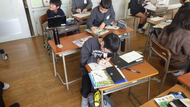 今日は、描きたいものをクロームブックで調べて、下書きを完成させました。