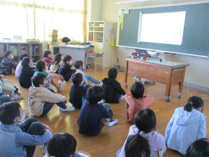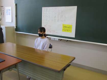 各教室では、萩っ子たちが真剣に配信を見ていました。自分のクラスの学級代表が任命証をもらう時には、一緒に礼をする子供もいました。