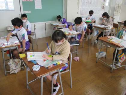 水彩絵の具で絵を描きました。水の量や筆の使い方を工夫しながら楽しく描いていました。