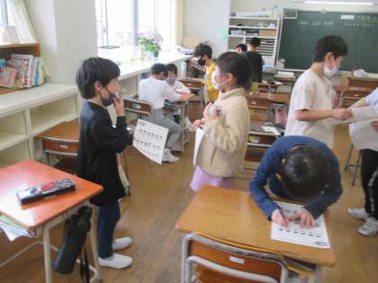 みんな楽しみにしていた外国語活動が始まりました。ローマ字のネームプレートを作ったり友達と英語で自己紹介をしたりしました。