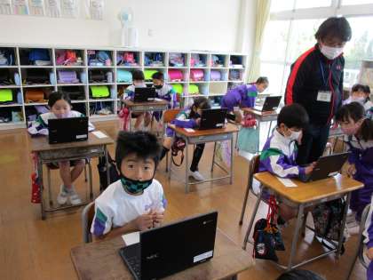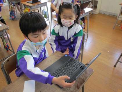 火曜の朝のマイタイムは、基礎基本の時間です。2年生はchromebookでタイピングの練習をしました。友達同士、教え合う姿も見られ、楽しく取り組んでいます。