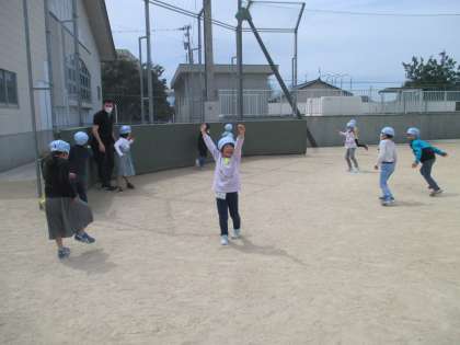 なかよしタイムに、外で楽しく遊びました。今日は、先生も一緒に、グラウンドを思い切りかけまわっていました。