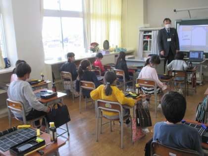 今日は、習字道具の使い方や並べ方を学習しました。動画を見ながら同じように机の上を用意し、次回の学習では、「筆の使い方や筆先の向きに注意して書こう」と意欲を高めていました。