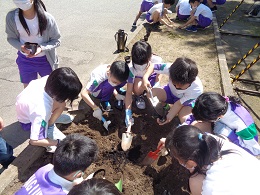 その後は、一人一人が種を植えました。発芽するのをとても楽しみにしていました。