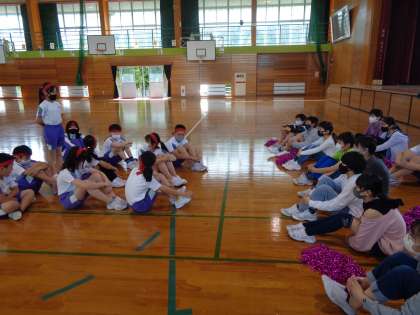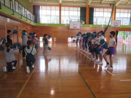 運動会に向けて応援練習が始まりました。6年生に歌やふりつけを教えてもらい一生懸命に練習していました。