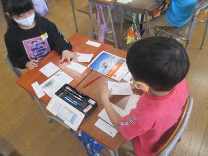 国語科の学習で、「たんぽぽのちえ」という説明文の学習をしています。これは、教材文を6つに分け、正しい順序に並び替えているところです。
