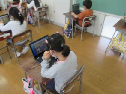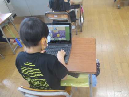 クロムブックを使って、タイピングの練習をしています。少しずつ、キーボードのアルファベットの位置を覚えてきています。