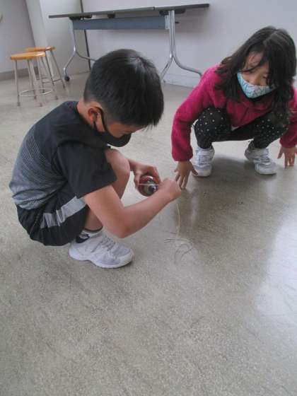 国語科「こまを楽しむ」の文章中に紹介されている、「鳴りごま」「逆立ちごま」「たたきごま」に挑戦しました。筆者の説明をよく読んでいたので、回し方や回る様子を確かめられて満足していました。また、回し方が難しそうだと思っていた子も、実際に試してみると回すことができ、感動していました。「もっと回したい」と、また回すことのできる機会を楽しみにしています。