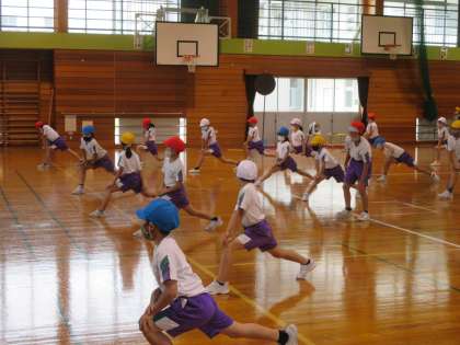 運動会に向けて、練習を頑張っています。今日は、個人走のスタートの姿勢を確認し、勢いよくスタートをきれるように学習しました。