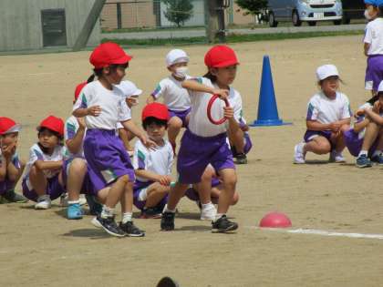 1年生は折り返しリレーです。しっかりとリングバトンを渡すことができました。