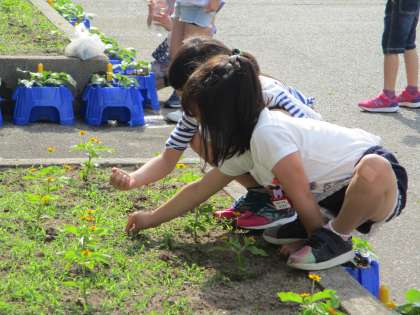 さらに、水やりが終わった子供達から、進んで花壇の草むしりに取り組んでいます。