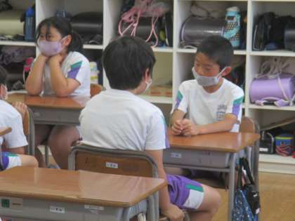 ペアになって話をし、考えを広げたり、深めたりしています。友達の話に耳を傾け、うなずいて聴く子供が増えてきました。
