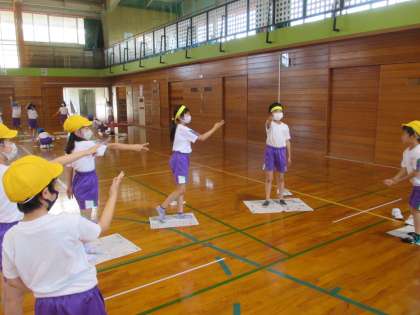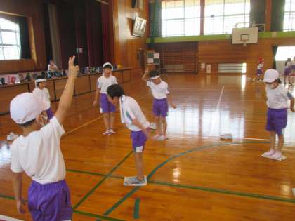 王様ドッチボールの後は新聞ジャンケンをしました。「4年生さんは、ジャンケンが強いな」「新聞から落ちないコツを教えてもらったよ」等、話していました。