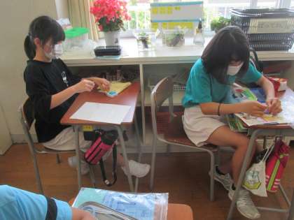 家庭科で、玉結びと玉どめに挑戦しました。初めに動画を見てやり方を確かめた時は、「難しそう」「絶対無理」と言っていた子供たちでしたが、実際にやってみると「できた」「意外と簡単」とみんな上手にできていました。次は、なみぬいに挑戦します。