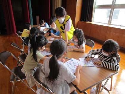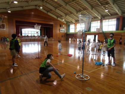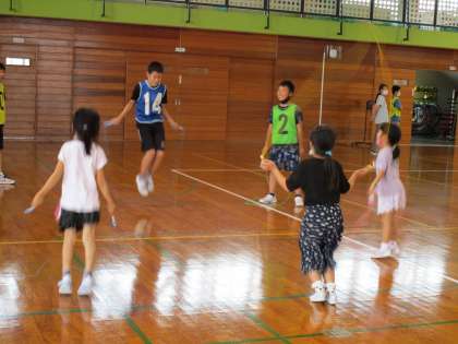 1−1の子供たちと集会をしました。1年生に事前にインタビューした活動からいくつかを選び、準備をしてきました。まずは、みんな一緒に「逃走中」をしました。6年生は歩きながらだったのですが、やはりあっという間に1年生をつかまえてしまいました。その後、縄跳び、読み聞かせ、イラスト、ゲーム、玉入れのコーナーに分かれて自由に1年生と一緒に活動をしました。とても仲が深まったと思います。