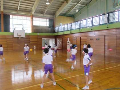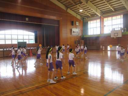 「ポートボール」の学習が始まりました。今日はいろいろなパスの練習に取り組みました。どのように投げると、パスをする相手がボールを受け取りやすいかを考えながら、練習しました。