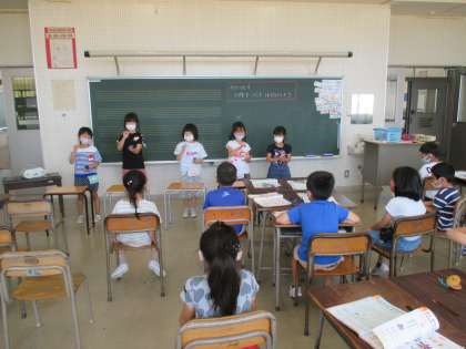 「カスタネットの鳴らし方が上手だよ」「どのリズムか分かったよ」「リズムがそろっていて、上手だったよ」と聞いていた友達もよさを見付けていました。