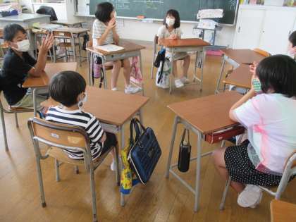 今日は、なかよし班の友達と遊びました。6年生の「今日は楽しかった?」という呼びかけに、「はい」と明るく返事をしていました。帰りの会に1日を振り返ると「なかよし班の友達と前より仲が深まったと思う」と話す子供もいました。