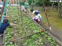 ヘチマを花壇に植え直してから約1ヶ月が過ぎました。ヘチマの生長も感じられる中、雑草たちもぐんぐんと伸びてきたため、さわやかタイムに草むしりを行っています。自分たちで育てているヘチマが、さらに元気よく生長するためにも、がんばっていきたいですね。
