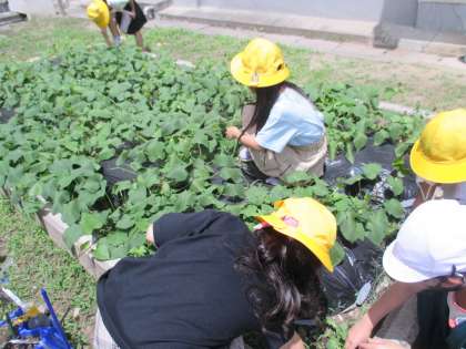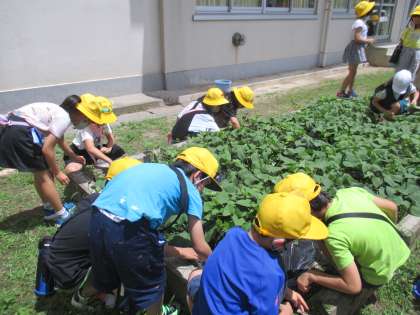 雨降りの日が多くなり、さつまいも畑にたくさん雑草が生えていました。野菜の水やりや観察をしたときに、すこしずつ雑草を抜き、さつまいもが元気に育つよう手入れを頑張っています。