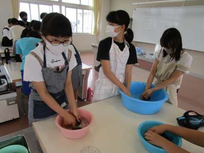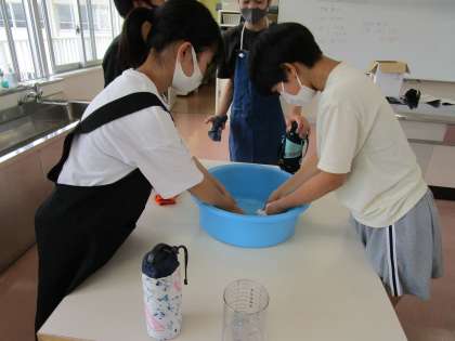 洗濯の実習をしました。今回は、手洗いで靴下を洗ってみました。子供たちは、手順や洗い方に気を付けて靴下を洗っていました。ぜひ、ご家庭でも実践してほしいと思います。