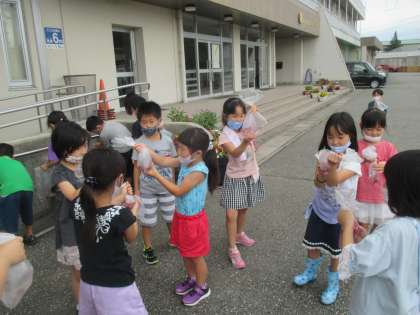「わあ、ブドウジュースみたい」「こんなに濃い色になったよ」とびっくりしていました。